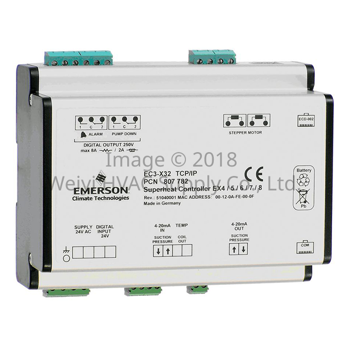 - Superheat control in conjuction with Emerson stepper motor driven electrical control valves EX4-EX8